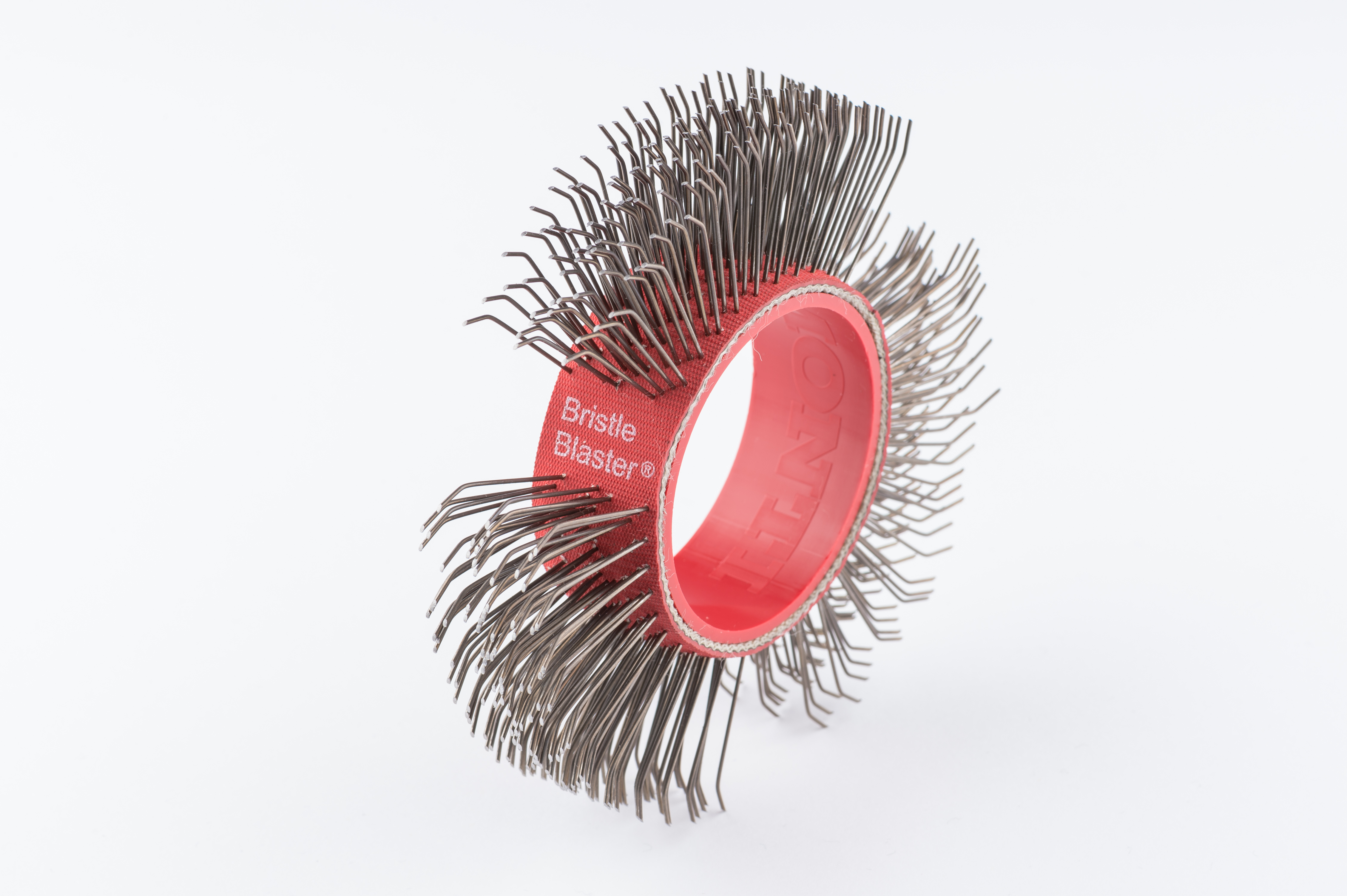As Cintas Bristle Blaster® são cintas de escovas de aço mola que, por meio de aceleração dinâmica impactam contra o metal, removem corrosão e geram um perfil de rugosidade médio de 50 a 98 mícrons com limpeza semelhante ao (Sa 2½-3) comparável ao jateamento abrasivo em uma única etapa.
